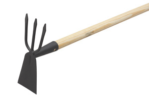 Doppelhacke flach schwarz mit Stiel 3 Zinken